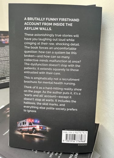 Drawn from astonishingly true experiences, these stories will have you laughing out loud one moment and recoiling the next, as the humour collides head-on with raw, shocking detail. Nothing is softened for comfort. Nothing is cleaned up for appearances. What emerges instead is a portrait of a system so profoundly broken it forces an uncomfortable question: how can an institution designed to restore minds be this dysfunctional—and how can so many collective minds malfunction at the same time?