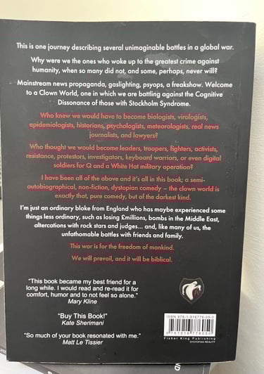Loosely chronological, it weaves memoir chapters with satirical riffs and “battle reports,” keeping the pace frantic and engaging—like a pub yarn from a battle-scarred mate. British wit shines through the profanity and self-deprecation, balancing heavy themes (loss, isolation) with absurd comedy. At ~250 pages, it’s accessible for red-pilled vets or curious 'normies', ending on a defiant high: The clowns are crumbling; suit up.