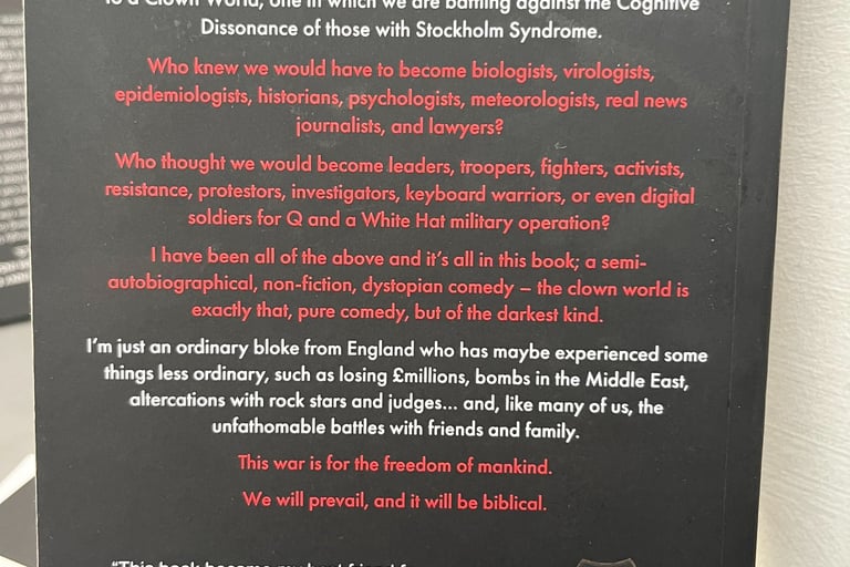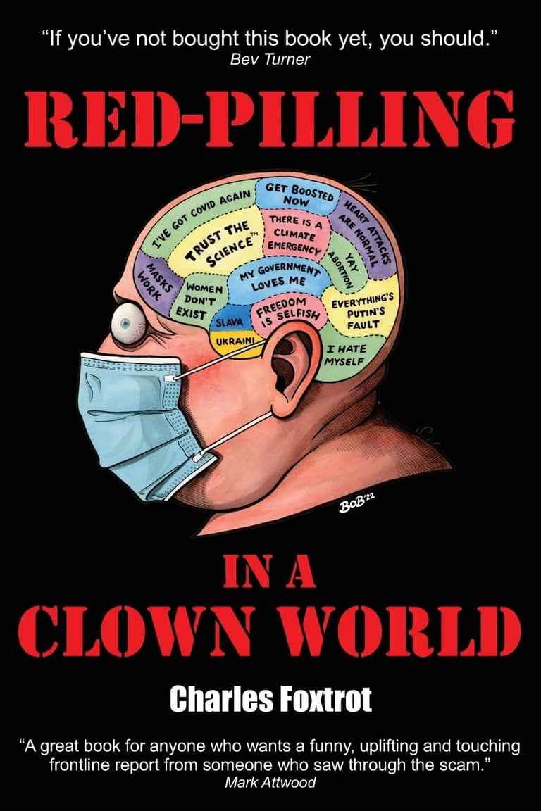 Foxtrot’s central hook: Why did we—ordinary folks—spot the “greatest crime against humanity” (COVID lockdowns, vaccines, and media gaslighting) while others stayed asleep, trapped in “Stockholm Syndrome” toward their captors? He frames the pandemic not as a health crisis but a scripted “freakshow” of psy-ops, cognitive dissonance, and elite manipulation, turning everyday people into reluctant experts: biologists debunking virology myths, historians unearthing precedents, or “keyboard warriors” for Q’s “white hat” military op. 0 2 4 The “clown world” metaphor runs throughout—politicians as Keystone Cops, media as propaganda clowns—urging readers to embrace the absurdity as fuel for resistance rather than despair.