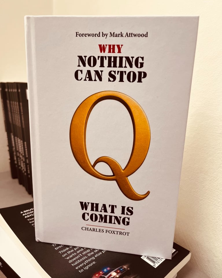 Published in November 2025 by 104Publishing (with a foreword by Mark Attwood), this is the follow-up to Foxtrot’s 2023 debut Red Pilling in a Clown World. Clocking in at around 300 pages, it’s a no-holds-barred dive into the “Q” phenomenon—often smeared as “QAnon” by mainstream media (MSM)—framed as an exhilarating guide for the uninitiated, skeptics, and deep divers alike. Foxtrot, the pseudonymous British author who claims personal ruin from the COVID “psy-op,” infuses the book with dry wit, raw frustration, and unapologetic optimism, urging readers to “make your own mind up” amid global chaos.